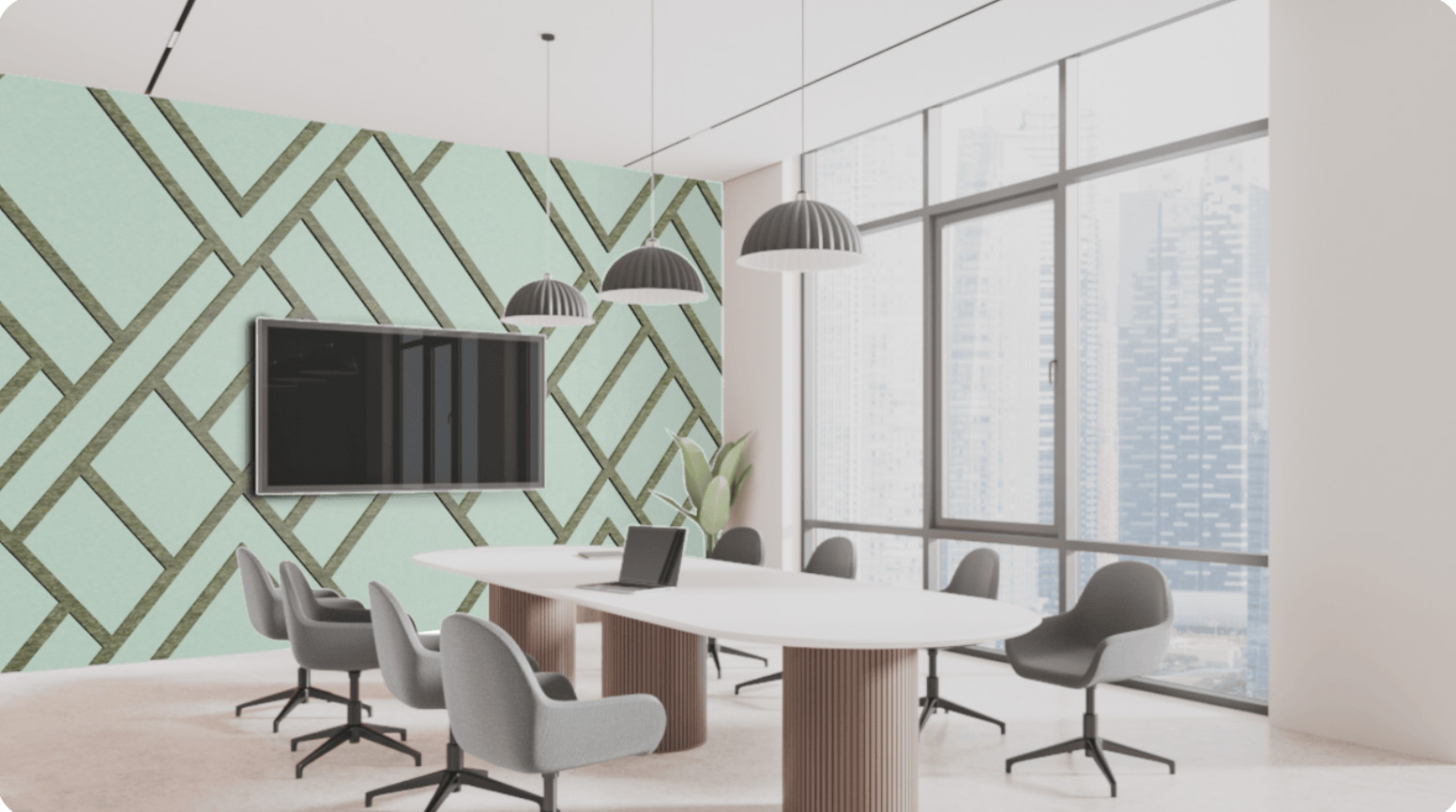 Benieuwd hoe akoestisch PET-vilt er in het echt uitziet en hoe het aanvoelt? Kom langs in onze showroom in het midden van het land. Ervaar de veelzijdigheid aan oplossingen voor wand, plafond en ruimteverdeling en doe inspiratie op voor jouw interieur project.