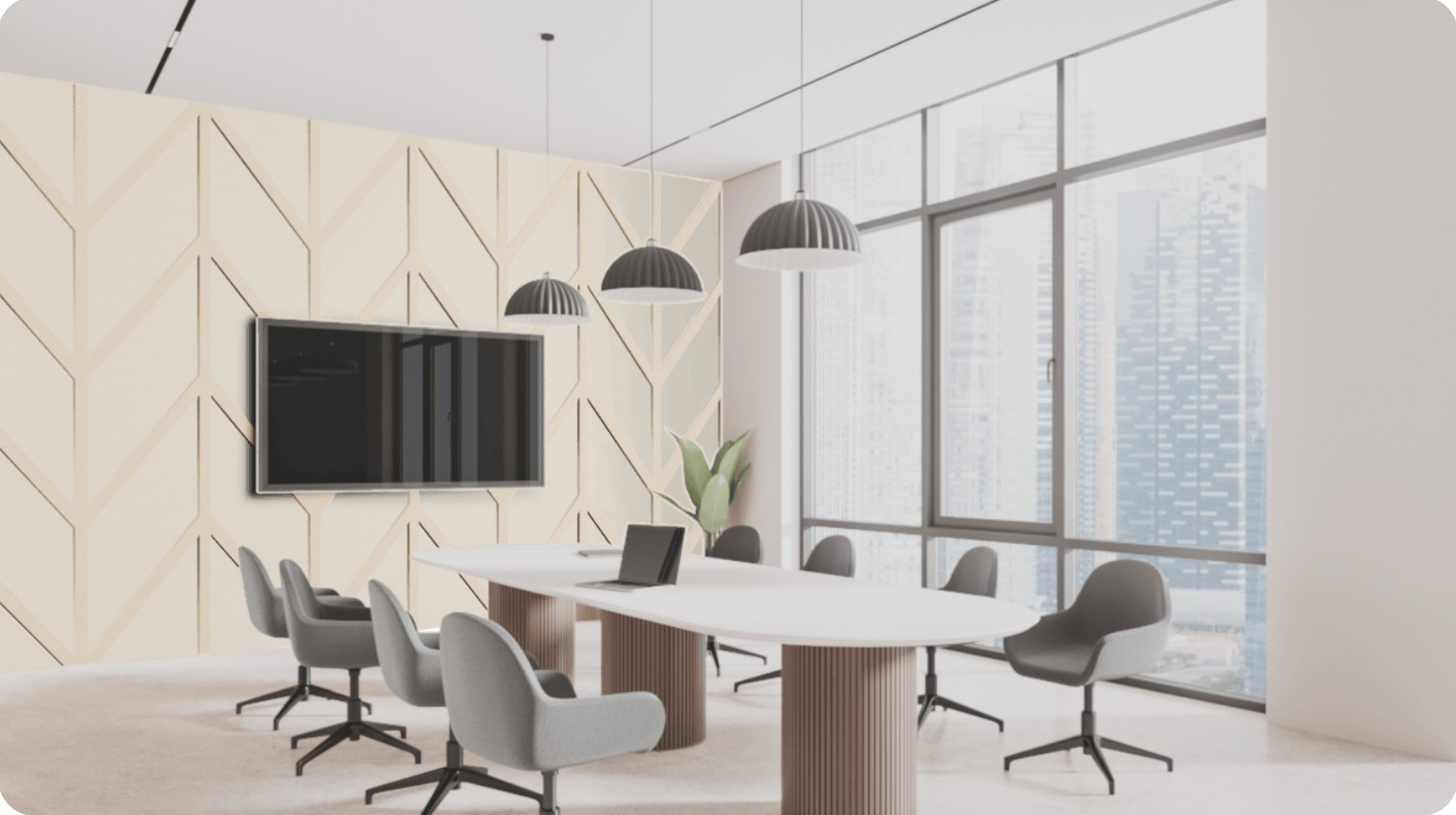 Benieuwd hoe akoestisch PET-vilt er in het echt uitziet en hoe het aanvoelt? Kom langs in onze showroom in het midden van het land. Ervaar de veelzijdigheid aan oplossingen voor wand, plafond en ruimteverdeling en doe inspiratie op voor jouw interieur project.