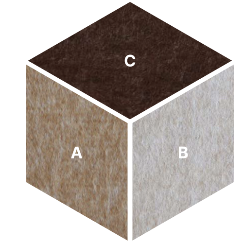 | Kubus deel A+B+C | 346 x 200 mm | 9 mm PET-vilt | 2,00 m² | 23 stuks |