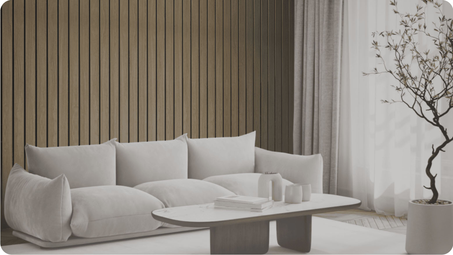 Met zijn bredere latjes biedt het een nog krachtigere combinatie van stijl en geluidsbeheersing, ideaal voor eigentijdse interieurs.