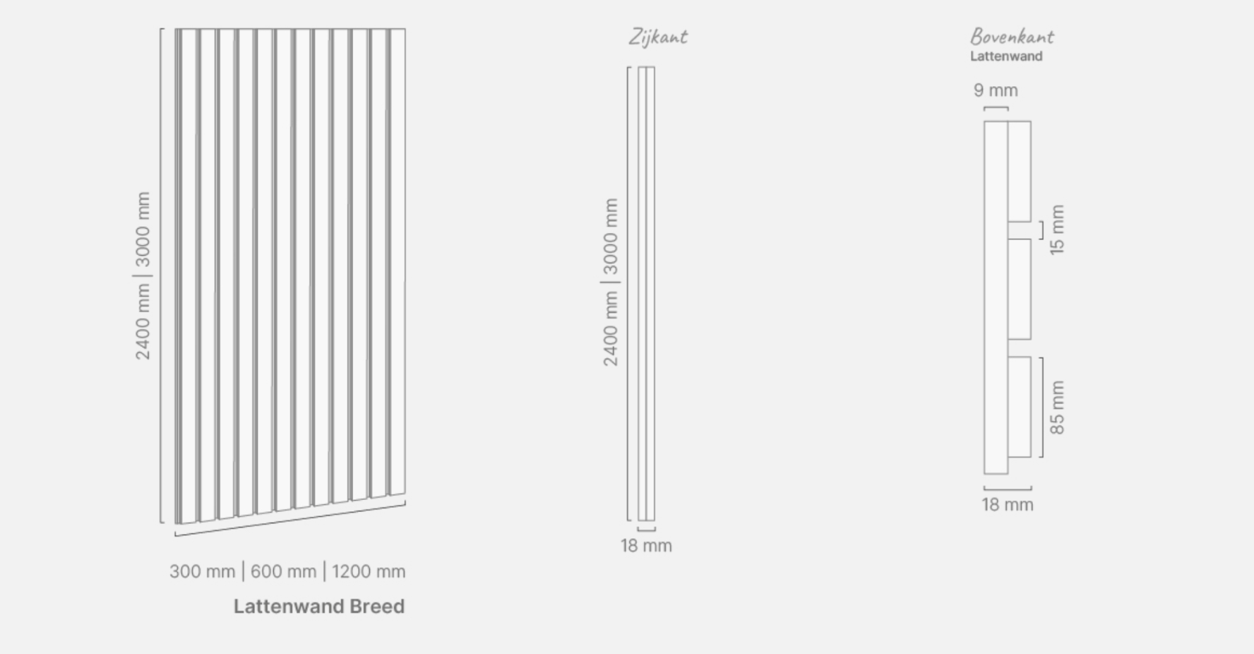 Lattenwand Smal 12001200 x 2400 mm18 mm PET-vilt2,88 m²1 stuks