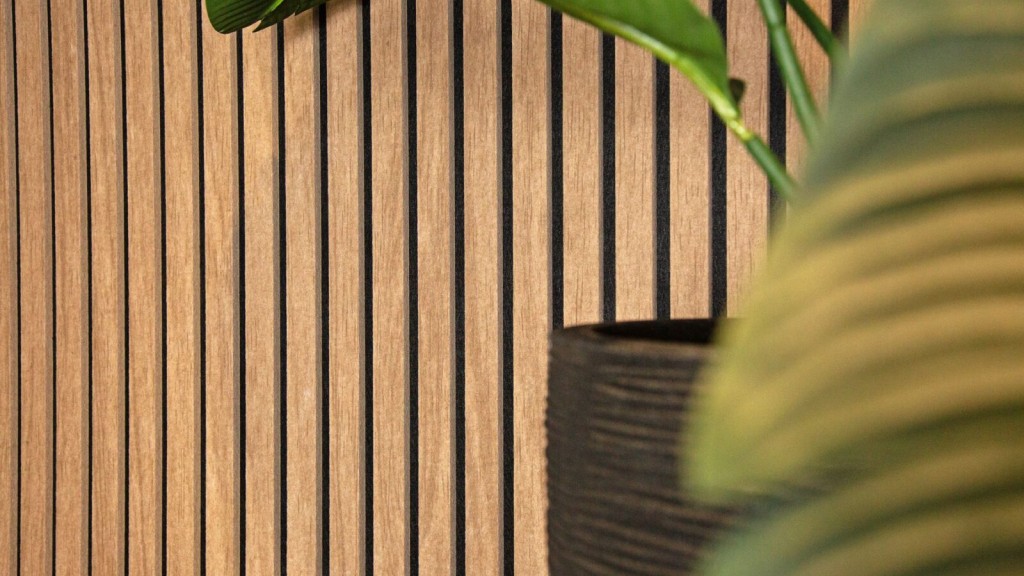 Het is een zeer geliefde eyecatcher in ieder interieur; een woodwall. Kies je voor Tacito’s Lattenwand Smal met houtlook (2 lagen PET-vilt), dan profiteer je niet alleen van de prachtige looks, maar minimaliseer je ook de geluidsreflectie van harde oppervlakken. Een ideale, duurzame en stijlvolle oplossing met akoestische panelen geschikt voor iedere ruimte.