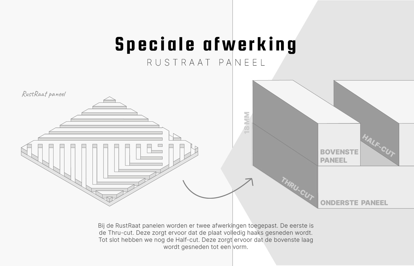 | RustRaat Paneel | 1200 x 2400 mm | 18 mm PET-vilt | 2,88 m² | 1 stuks |