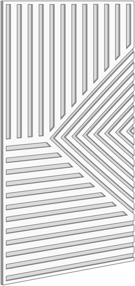 Keuze uit 8 verschillende patronen, waarbij binnen hetzelfde patroon paneel A doorloopt en aansluit op paneel B. Bestel je meerdere panelen van hetzelfde patroon (bijvoorbeeld aantal 3) dan ontvang je paneel A + B + A, bij een aantal van bijv. 4 panelen ontvang je A + B + A + B.