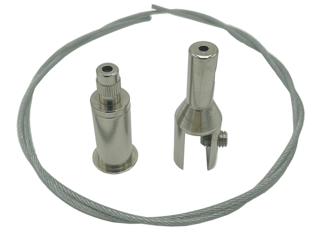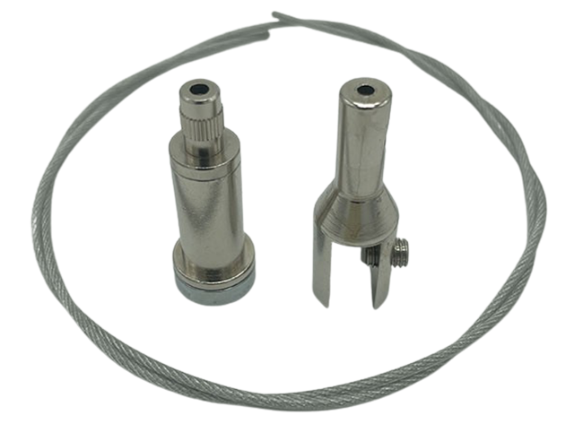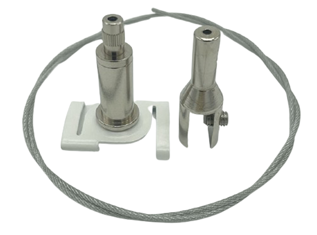 2x kabel van 1 meter lang, 2x aansluiting voor aan het plafond en 2x aansluiting voor aan het product.